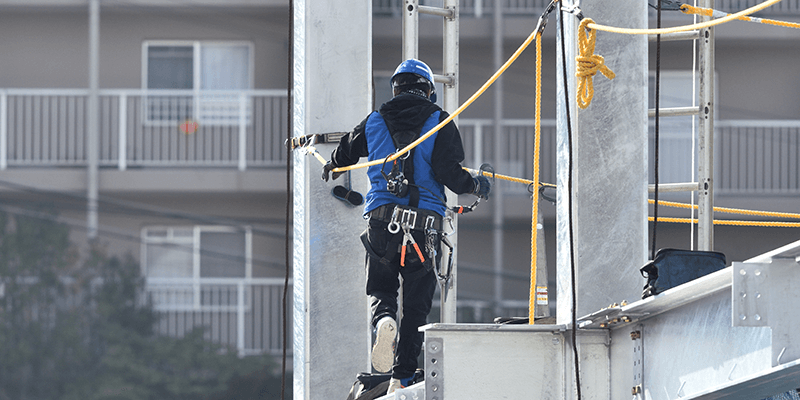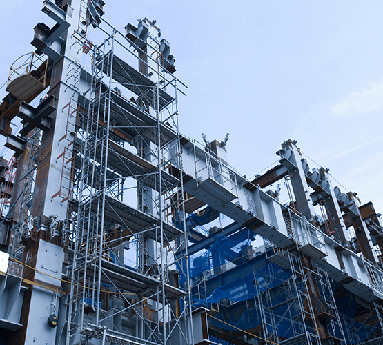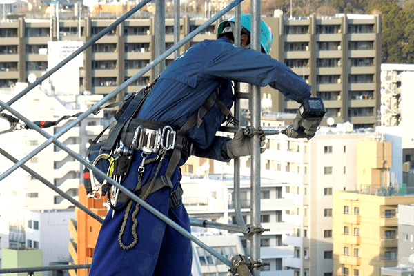 ビルや橋梁、倉庫や発電所など、様々な構造物の建設に必要となる、足場・安全設備を設置します。外壁の塗装や補修のための工事にも必要となります。当然足場の解体も含まれます。